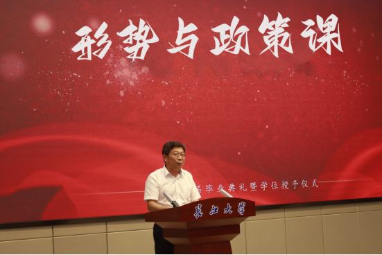 6月8日下午,在武汉校区学术报告厅,bv伟德国际1946经理江厚顺为2023届全体毕业生讲授形势与政策课。