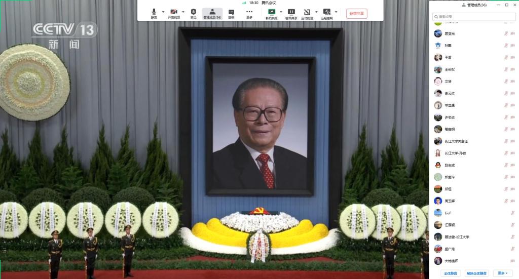 2022年12月6日上午10时,党中央、全国人大常委会、国务院、全国政协、中央军委在北京人民大会堂隆重举行江泽民同志追悼大会。bv伟德国际1946组织党员师生以线上集中或个人形式观看追悼大会现场直播,表达对江泽民同志的深切哀思。