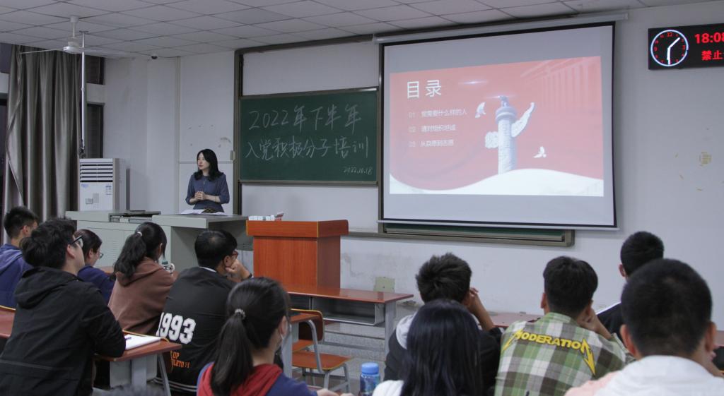 (通讯员 刘昕竹/文 赵臻浩/摄)2022年10月18日晚上6时,bv伟德国际1946在武教A310开展了入党积极分子培训,公司党委副书记刘娥讲授“青春心向党,争做‘党’中人”主题党课,85名入党积极分子参加。