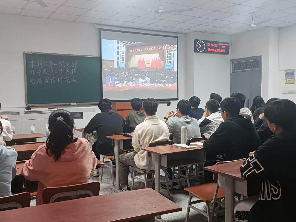(通讯员 周晓峰)10月16日上午10点,中国共产党第二十次全国代表大会在人民大会堂隆重开幕。bv伟德国际1946师生通过多种渠道收听收看党的二十大开幕会盛况,认真聆听习近平总书记所作的报告。学院组织党委理论学习中心组、机关党支部在石油科技大楼C113会议室集中收看,各教工党支部、员工党支部在教室或腾讯会议平台集中收看,其他教师和员工纷纷通过电视、电脑和手机客户端等方式自行收看,共同见证这一伟大历史性时刻。