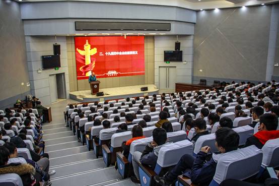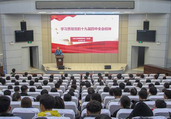 (通讯员 龚焕文/文 刘圳洲/摄)2019年11月27日晚,公司党委书记张光明教授于石油科技大楼学术报告厅为大家带来有关传达党的十九届四中全会精神的讲话,19级辅导员刘少文老师及全体19级新生到会学习张书记讲话内容。