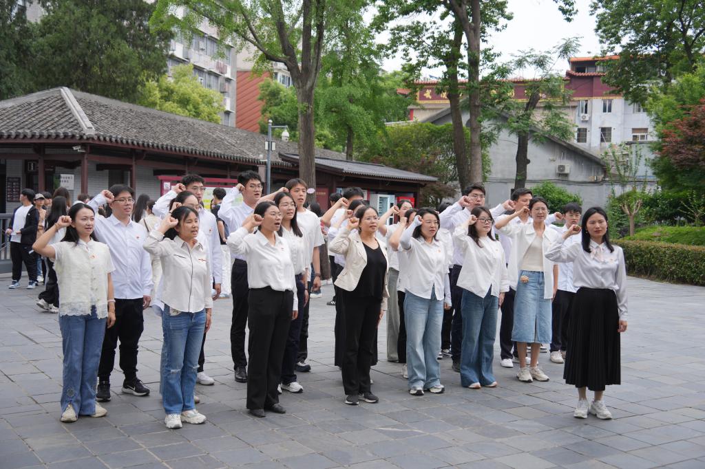 “我志愿加入中国共产党,拥护党的纲领,遵守党的章程……”,武昌农民运动讲习所前,全体党员面向鲜红的党旗庄严宣誓,铿锵有力的誓词在青砖灰瓦间激昂回荡,与历史长河中先辈们的革命呐喊遥相呼应,彰显着新时代党员传承红色精神、勇担时代使命的坚定决心。