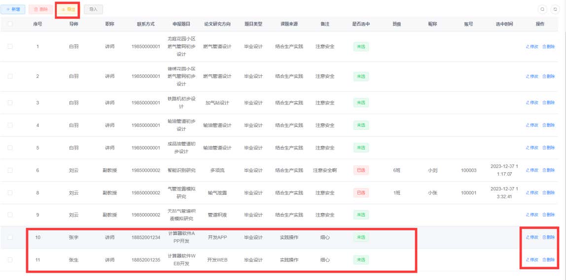 针对本科毕业设计选题环节存在的流程繁琐、匹配效率低等问题,支部主动作为,由系主任张兴凯老师组织3名经验丰富的党员教师组建研发小组,历时30天自主研发bv伟德国际1946本科毕设选题系统。该系统覆盖油气储运、石油工程等4个专业,可满足每年500余名本科生的毕业设计选题需求,充分考虑了不同专业的毕业设计特色与需求。