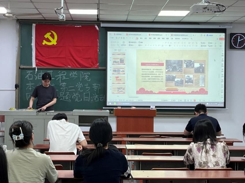 接着,由徐丰苗、汤羽翔同志讲授微党课。首先,他们指出党史是教科书,总结经验教训,助力传承传统、提升能力。随后分新民主主义革命时期”,“社会主义革命和建设时期”,“改革开放新时期”三阶段梳理,展示中国共产党历史给予时代的意义,最后总结 “没有共产党就没有新中国”,强调党在新世纪肩负实现推进现代化建设、完成祖国统一、维护世界和平与促进共同发展的使命,需抓住机遇实现民族复兴。