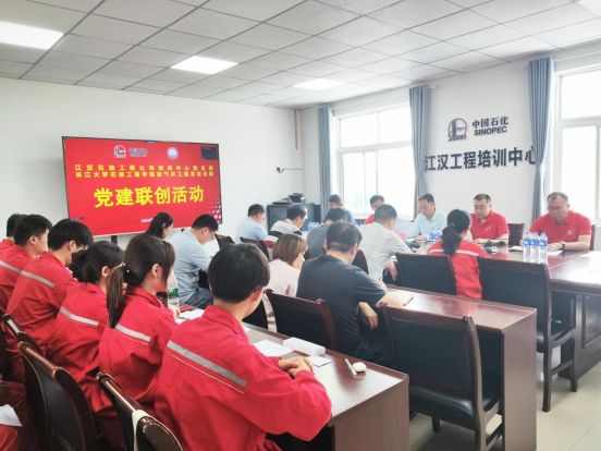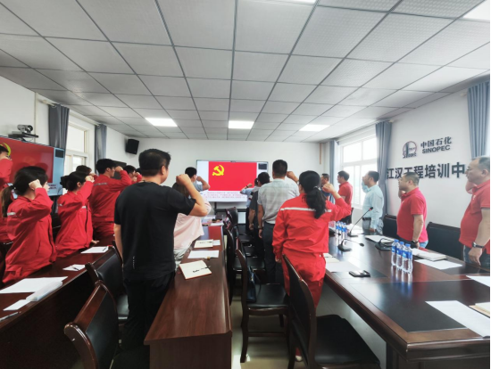 在员工党员吴彪的带领下,全体与会党员同志重温了入党誓词。江汉油田工程公司培训中心党支部副书记孙铁、油气井工程系师生联合党支部书记余义兵分别介绍了支部基本情况和党建特色工作,还交流了工作经验。