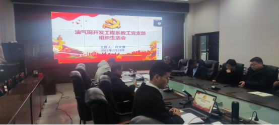 (通讯员 许文俊)2月23日14时,油气田开发工程系教工党支部在石油科技大楼B113召开了2023年2月主题党日、2022年度组织生活会和民主评议党员活动,支部书记许文俊同志主持,全体党员以线上线下结合的方式参加。