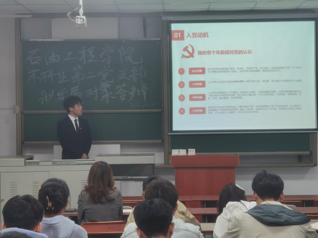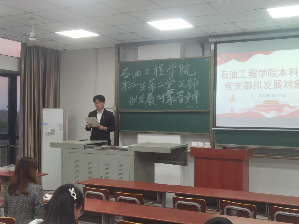 (通讯员 任堂政)2022年10月11日下午六时,bv伟德国际1946本科生第二党支部于B-402召开拟发展对象预审答辩。本次会议由支部任堂政同志主持,党委副书记刘娥老师,支部29名党员,支部16名拟发展对象参会。