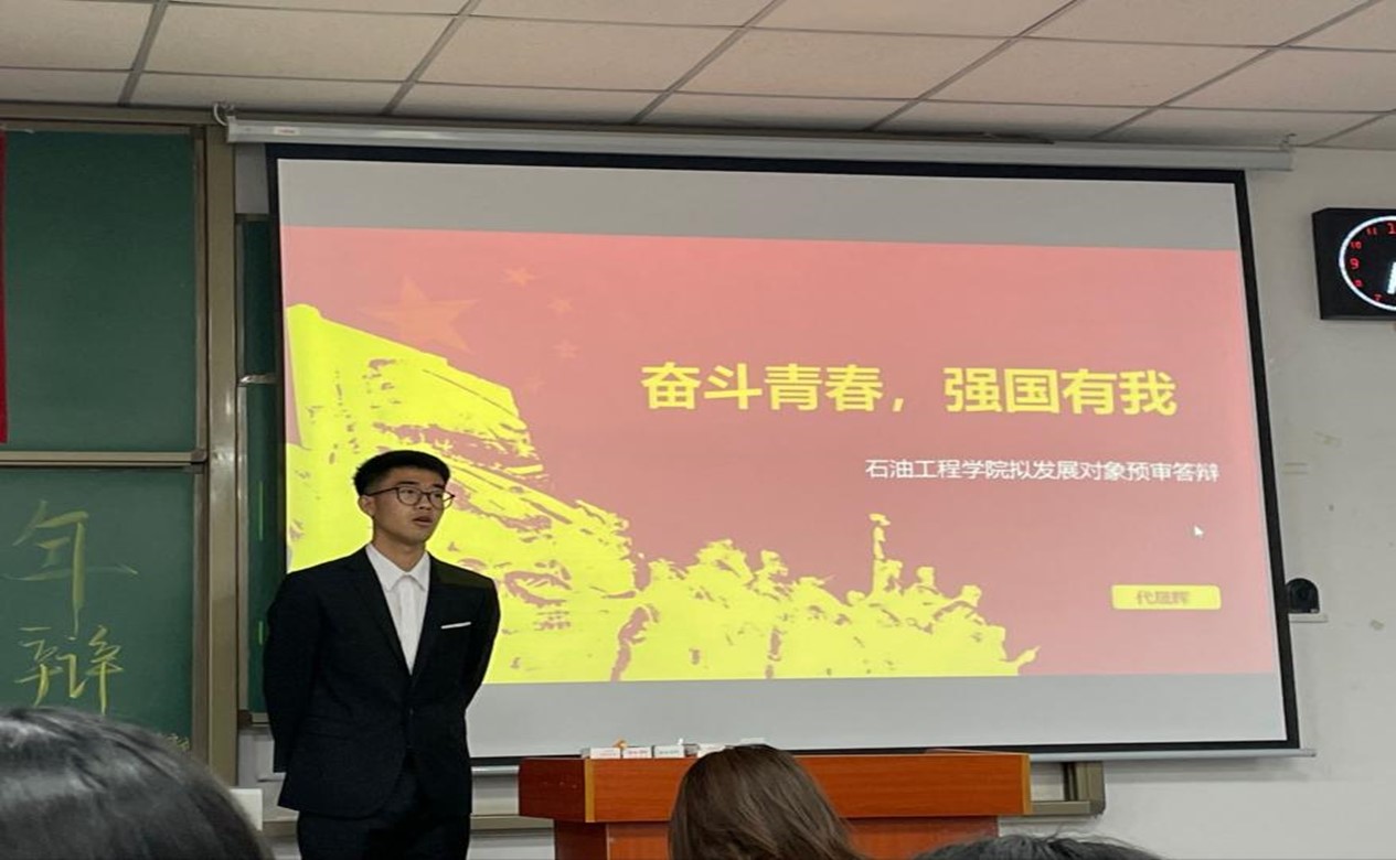 本次答辩会共分为两个部分,第一部分,个人演讲,第二部分,党性知识考察。魏嘉等十五名同志以“奋斗青春,强国有我”为主题进行了答辩,对个人情况、入党动机作出了阐释,结合“奋斗青春,强国有我”进行了深刻的自我剖析。于泽同志对拟发展对象进行了党性知识提问。