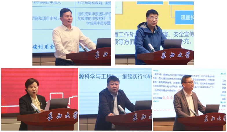 公司领导班子分别就分管工作进行部署安排。常务副经理李忠慧就发展性指标、研究生招生、全国重点实验室等重点工作进行部署,具体介绍了各项工作目标、具体举措和推进计划。副经理张顶学汇报了课程目标达成情况、专业监测评估、本科毕业设计、实习教学、“本硕博贯通培养拔尖创新人才计划”选拔、本科教学实验室建设、专业与课程建设等工作具体安排,副经理郑双进介绍了科研服务、平台建设和员工工作的工作进展和计划,副经理范梅英就财务、实验室空间建设等内容进行工作汇报,副书记张昊介绍了学工团队、安全管理、学风建设、学科竞赛、员工就业等工作情况和部署安排。