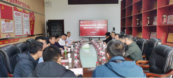 为进一步推进公司与武汉新锐合金工具有限公司校企联合实验室建设进程, 10月30日,武汉新锐合金工具有限公司董事长吴何洪、副总裁刘勇、技术中心主任余立新、副主任李宁、湖北江汉石油仪器仪表股份有限公司总经理黄大勇和总工程师佘理鸿一行来院进行交流。学院经理宇波、常务副经理李忠慧、党委副书记张昊、副经理张顶学、副经理范梅英、副经理郑双进、实验中心主任马超、杨冬教授、喻高明教授及相关老师参加交流会。