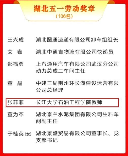 4月29日上午,2024年湖北省庆祝“五一”国际劳动节座谈会在汉召开,56个单位、106名个人荣获湖北五一劳动奖状、奖章,106个集体荣获湖北省工人先锋号。其中,公司教师张菲菲获湖北五一劳动奖章。