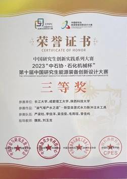 (通讯员 陈金建)9月15至17日,“中石协·石化机械杯”第十届中国研究生能源装备创新设计大赛全国总决赛在中国石油大学(华东)圆满落下帷幕。公司魏凯、刘玉龙老师指导的《“油气增产水之道”一新型自激式水力脉冲注水工具》项目获全国三等奖。