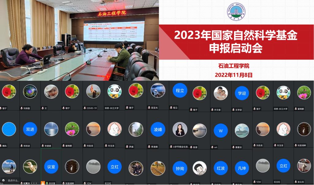 (通讯员 杨小玉)为进一步落实学校2023年国家科学基金申报工作部署会会议精神,扎实做好2023年度国家自然科学基金项目申报工作,11月8日下午,学院2023年国家科学基金申报启动会在石油科技大楼B113室线上线下同步召开。院领导、学科办和所有符合申报条件的老师参加会议,会议由经理江厚顺主持。