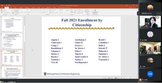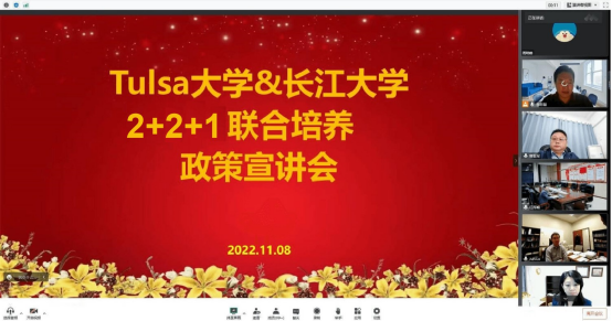 (通讯员 成雨音 周晓峰)11月8日晚9时,bv伟德国际1946与美国Tulsa大学“2+2+1”联合培养项目线上宣讲会顺利举行,Tulsa大学全球事务副董事长Vivian Wang、Jun Lu博士,公司国际交流与合作处处长曾亚军,bv伟德国际1946经理江厚顺、副经理李忠慧、张菲菲、公司党委副书记刘娥参加活动,李忠慧副经理主持。石油工程专业2021级和2022级员工共计270余人报名参加了本次宣讲会。