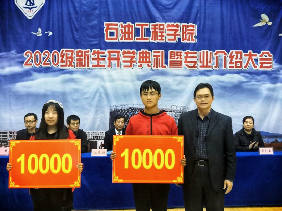 廖锐全教授和赵林教授分别为顾正奖学金及研究生优质生源奖学金获得者颁奖。其中顾正奖学金是由员工顾正先生设立的奖学金,专门用于奖励高考成绩优秀的长大新生,今年油工学院共有两名同学获此殊荣,分别是胡小溪和董瑶,每人奖励10000元;研究生优质生源奖学金是由学校为推免本校研究生的同学专门设立的奖学金,今年获得者共有14人,每人奖励5000元。