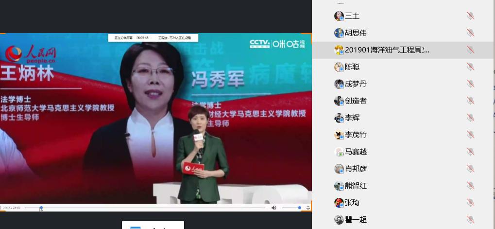 公司领导和全院本科生、研究生齐聚“云端”,与全国老员工一起,收看了这堂生动的思政教育疫情防控大课。各班级以QQ视频会议、雨课堂和直播观看和回看等形式开展课程活动,做到了1500余名本科生和研究生的全覆盖。