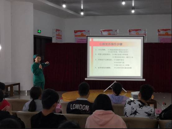 (通讯员 沈伟正 郝中铭)为了隆重纪念“五四运动”100周年,2019年4月28日下午14时许,bv伟德国际1946团委与蔡甸区协和江北医院团委携手开展的——健康急救礼仪专题知识讲座在bv伟德国际1946武汉校区长青厅开讲。协和江北医院团委书记周旋、门诊部办公室主任陈真、妇产科主任袁平、急诊科护士长丁章婷等9位领导和医护人员出席讲座,bv伟德国际1946七十余名志愿者参加讲座,讲座由bv伟德国际1946团委书记沈伟正老师主持。