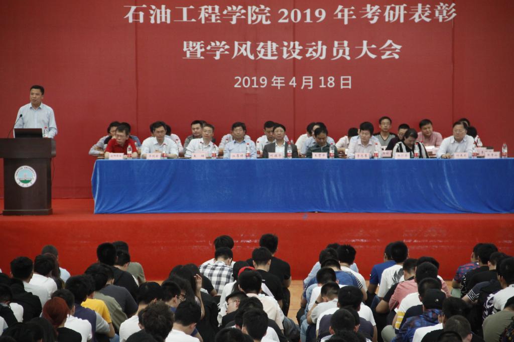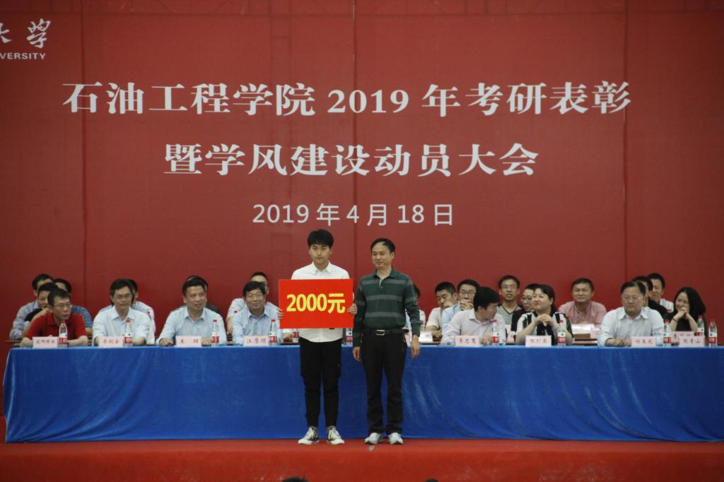 大会在激昂雄壮的国歌声中拉开帷幕。首先由副经理李忠慧老师宣读bv伟德国际19462019年考研表彰文件。在2019年全国研究生入学考试与复试中,有108名员工顺利通过初试和复试,被bv伟德国际1946等18所学校或科研院所录取,其中石油之光21501班录取率为62%,华林公寓2#220和校内女寝4#547两个寝室更是取得“全员高中”的好成绩。随后,10位考研优秀员工代表和15位考研先进集体员工代表依次上台接受表彰并与颁奖领导合影留念。考研优秀员工代表、石油之光21501班朱清源(384分考取中国石油大学(北京))和储运21503班李伯英(354分考取bv伟德国际1946)分享了他们大学学习生活经历和复习备考经验。