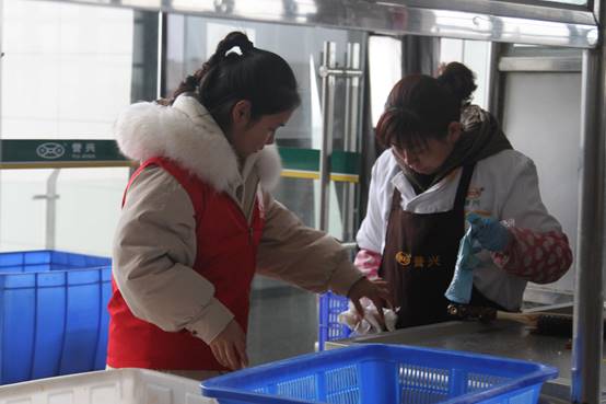 中午12时许,同学们在食堂门口集合,穿上专属的红色志愿服,分别在食堂一楼、二楼的各窗口排队区与回收餐具区进行志愿活动。经有序分工后,部分同学在取餐处维持秩序,营造好取餐排队的良好氛围,还有一些同学帮忙回收餐具,希望大家能在“光盘行动”下更加懂得柴米油盐的来之不易。