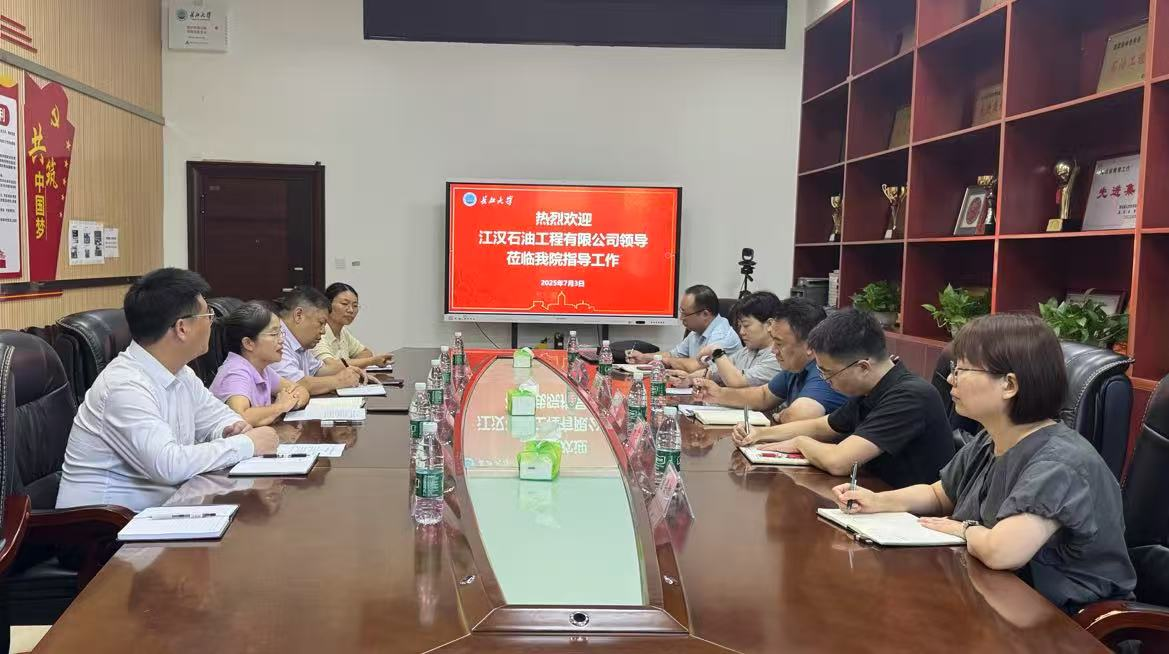 韩家新介绍了中石化江汉石油工程有限公司的发展概况,对公司在团队建设、人才培养等方面取得的成果表示高度赞赏。他期待双方共建产学研融合型实习基地,通过技术转化与人才培养实现双向赋能,以优势互补为基础,共同推动校企高质量发展。