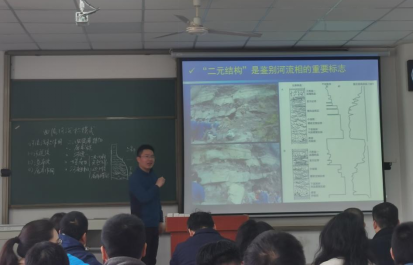 高达老师公开示范课分为两部分:一是他多年备赛参赛经验交流与分享,以“分享-探讨-进步”为主线,从bv伟德国际1946青年教师教学竞赛细则入手,分享了自己的参赛经验;二是模拟比赛课程讲授,以《岩相古地理》曲流河沉积模式为参赛节段,进行了完整的赛程示范。高达博士的示范课深入浅出,将最新的科研成果融入课堂教学,授课过程采用PPT与板书结合,既有文字表达、又有图片和视频播放,使得整个教学过程生动有趣,通过现场积极与员工互动,让员工对该课程产生了浓厚的兴趣。最后高达博士的讲课在热烈的掌声中落下帷幕,吸引了公司多名年轻教师现场积极互动与交流。
