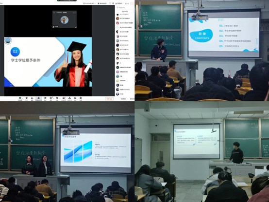 在正式的学习宣传活动中,创新理论小组成员化身“临时讲师”进班为同学们解读了《学位法》的核心条款。他们开篇点明本次学习交流活动的重大意义,着重强调《学位法》关系每一位员工学业发展、未来职业规划,引发同学们的高度关注。为了让晦涩的法律条文“接地气”,“临时讲师”们巧妙引入大量实际案例,将复杂的法律内容转化为通俗易懂的知识讲解,让同学们迅速掌握了学位授予条件、授予程序等关键要点,深入领会《学位法》保障教育公平、维护学术尊严的深层内涵。