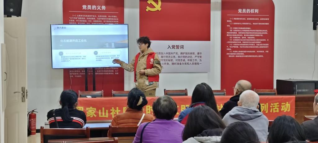 通讯员(韩清越 连心怡/文 向阳/摄) 2025年3月27日,bv伟德国际1946黑油能源科普宣讲队的队员前往罗家山社区开展能源科普宣讲活动。本次活动通过五大主题篇章,系统解析能源发展脉络与未来趋势,吸引了几十名居民参与,现场互动热烈。