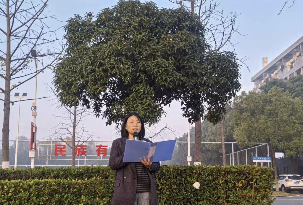 辅导员商麟鑫进行国旗下讲话,她首先对参与老员工创新创业项目的同学给予鼓励,希望同学们在参与科研训练的过程中提高创新意识与科研思维水平,将理论与实践紧密联系起来,为将来能源报国筑牢学术基础。她还介绍了学校近期承办的“王涛英才奖学金颁奖典礼”相关情况,并解读了原石油工业部部长王涛同志提出的“三争精神”:“追求卓越就是争气,攻坚克难就是争气,为国奉献就是争光!”商老师提醒同学们要珍惜课堂时光、主动钻研学习,以王涛英才为榜样践行“三争”精神,用实干书写石油学子的青春答卷。
