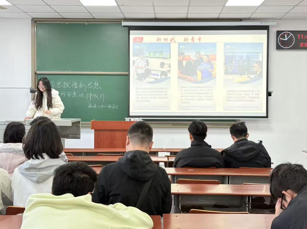 (通讯员张晓敏)为深入学习贯彻党的创新理论,切实增强团员青年的网络安全意识,激励广大青年在新时代新征程中担当作为,11月以来,学院紧紧围绕“学思践悟新思想,网安意识伴我行”主题,组织各团支部开展了一系列多层次、沉浸式的主题教育实践活动,着力推动理论学习走深走实、实践育人见行见效。