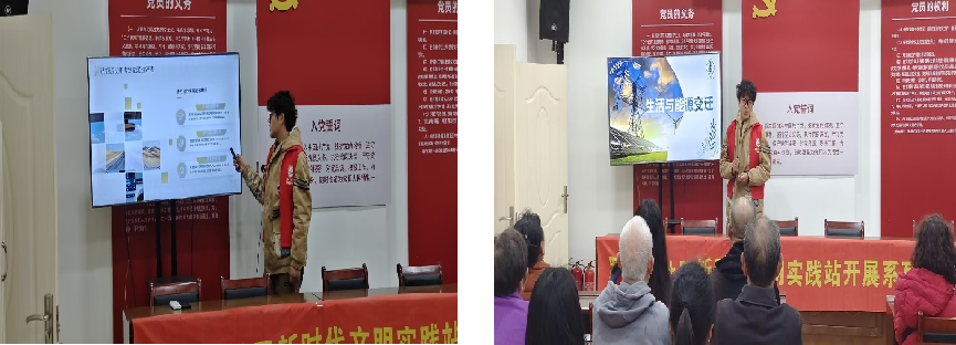 2025年4月9日,bv伟德国际1946黑油能源科普宣讲队的队员前往罗家山社区开展能源科普宣讲活动。主讲人李富淼以身边的新能源为切入点,结合老年人日常场景,用通俗语言介绍光能(太阳能热水器、光伏路灯)、风能(小型风力发电原理)、水能(水力发电与家庭节水)的应用价值,然后结合国家基建,向老人们介绍我国在新能源领域建设的诸多成就和宏伟蓝图,最后以发展新能源的意义作结,引发了老人们的深深共鸣,青年智慧与银发经验碰撞,科技之力与人文关怀交融,这场“青绿对话”为社区可持续发展注入新活力。